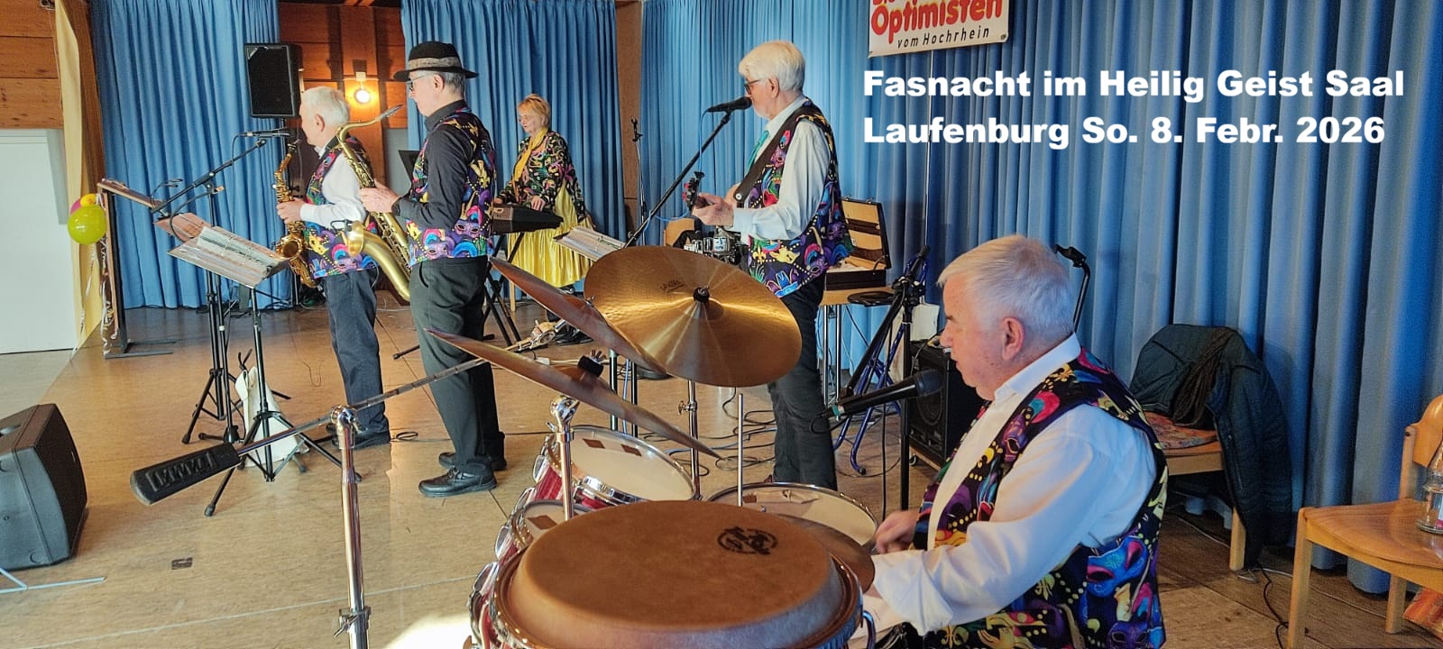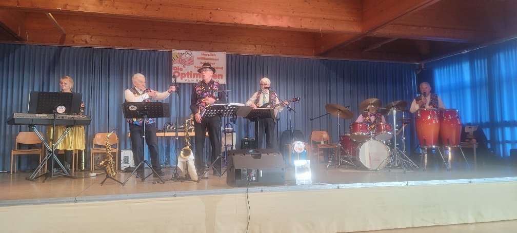Mit ihrem gern gehörten Repertoire aus den Ohrwürmern der 70er-, 80er- und 90er-Jahre unterhieltengen die sechs leidenschaftlichen Musiker – Brigitta Stärk, Karl Albicker, Heinz Huber, Peter Wolfer, Edmund Deiser und Meinrad Winkler – wieder die große Zahl an Gästen an ihren Tischen und auf der Tanzfläche. Seit über 30 Jahren begeistern „Die Optimisten“ ihr Publikum bei Seniorennachmittagen, Jubiläen, im Genuss-Stadel Stühlingen oder bei Fasnachtsveranstaltungen – weit über die Grenzen des Landkreises Waldshut hinaus.